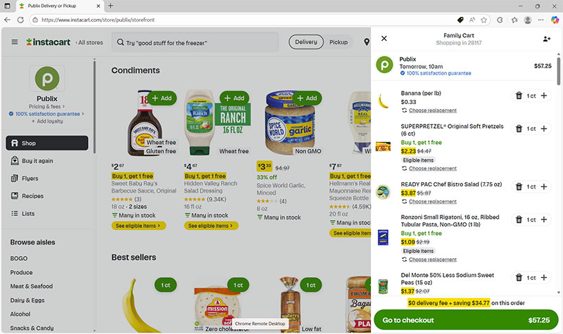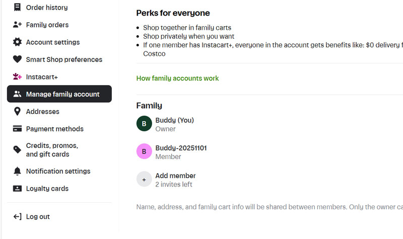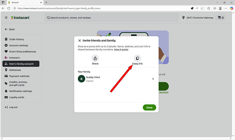 - Make sure you are in a family cart. You can see this by clicking on the green cart button at the top right. It will either say personal cart or family cart